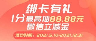 1分最高抽88.88元 微信立減金 綁卡有禮 郵儲銀行借記卡 還未綁定微信、支付寶? 綁卡禮遇為你而來! 1分最高可抽88.88元微信立減金 小伙伴們快來享福利~……