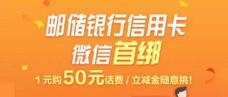 重慶 | 搶爆了!郵儲銀行信用卡1元購50元話費/立減金~