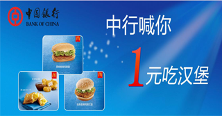 2016年3月19日到4月30日每周末開(kāi)始1元吃麥當(dāng)勞漢堡活動(dòng)。佰付美和中行合作,針對(duì)陜西省所有中國(guó)銀行財(cái)富管理芯片卡、中銀理財(cái)貴賓芯片卡持卡人開(kāi)展活動(dòng),陜西……