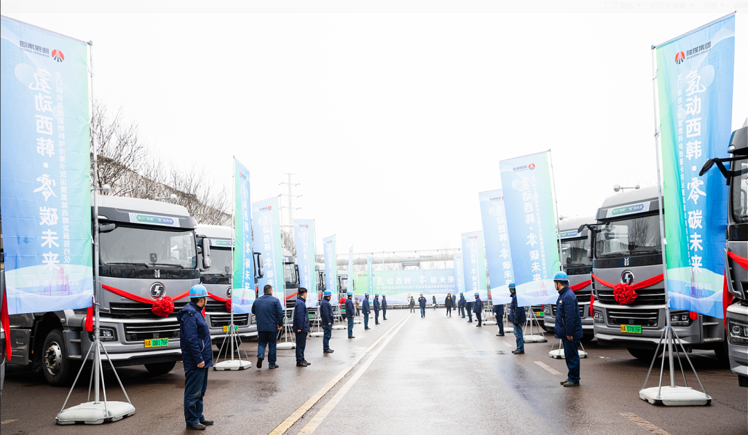 在會(huì)場(chǎng)所有領(lǐng)導(dǎo)的見證下,維納氫能執(zhí)行董事宋琦向陜鋼集團(tuán)龍鋼公司黨委書記、董事長(zhǎng)陳驍交付車輛鑰匙,伴隨韓城市委副書記張景鋒的宣布,33輛重卡鳴笛啟動(dòng),以氫能重卡為核心的綠色運(yùn)輸工作正徐徐展開。