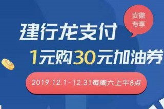 安徽 | 建設(shè)銀行龍支付加油年終鉅惠 1元購30元加油券
